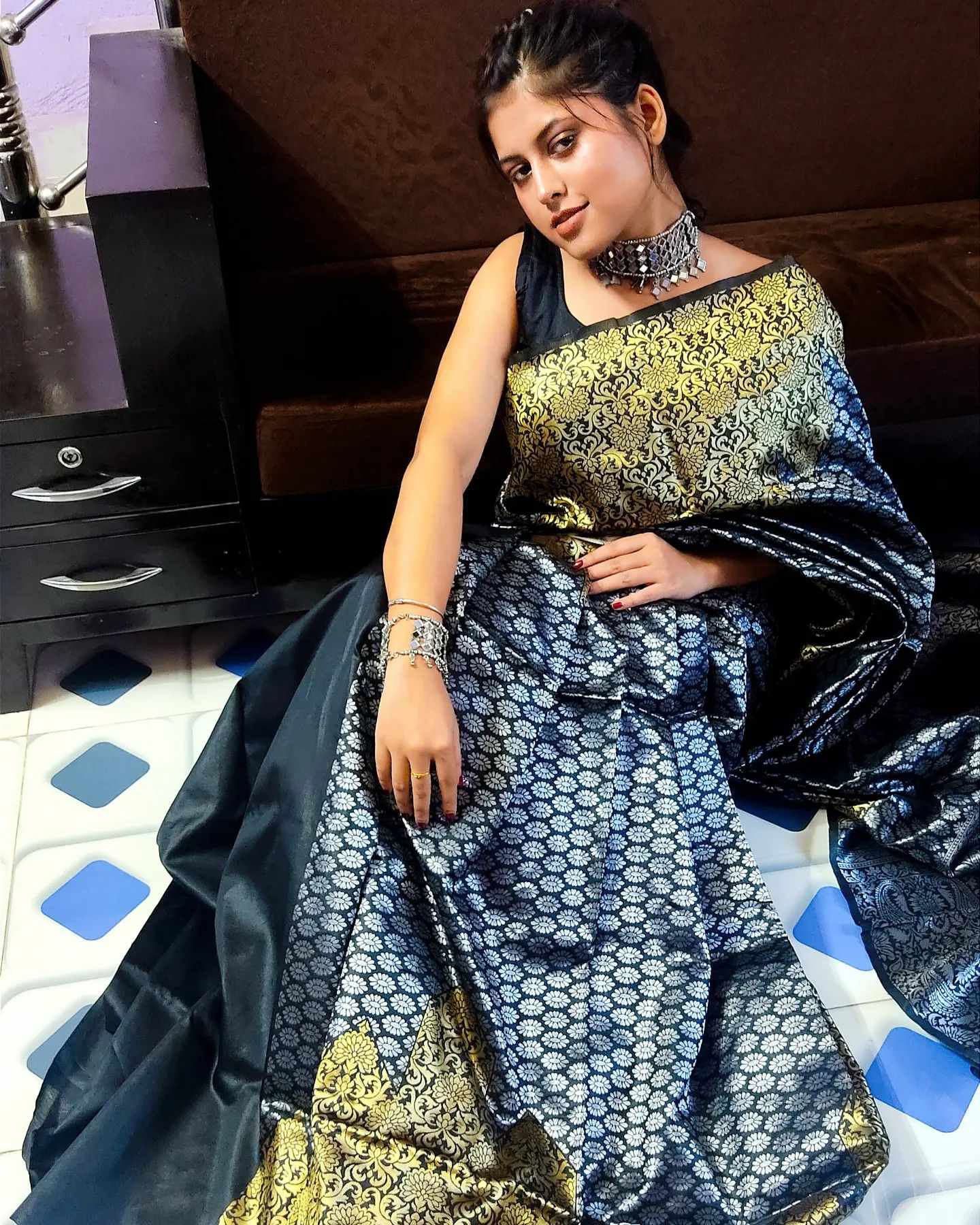 STUNNING BLACK COLOUR SAREE WITH BLOUSE
