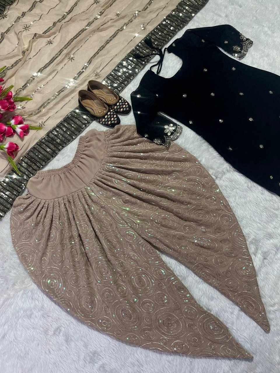 Dhoti Salwar: Faux Georgette With Embroidery 5mm Sequence Work.