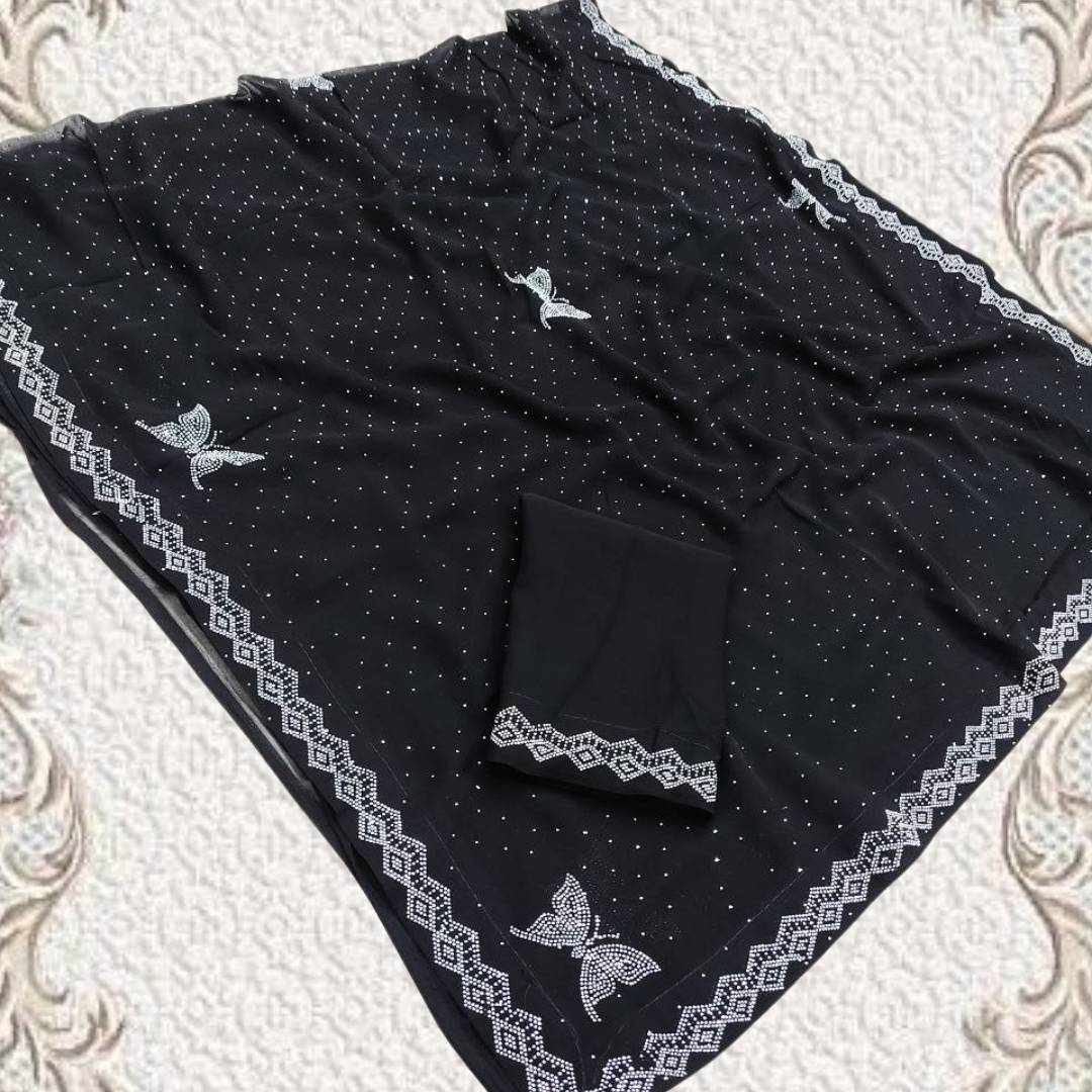 S4s Black Siroski Butterfly Stones Lace Georgette Party Wear Saree