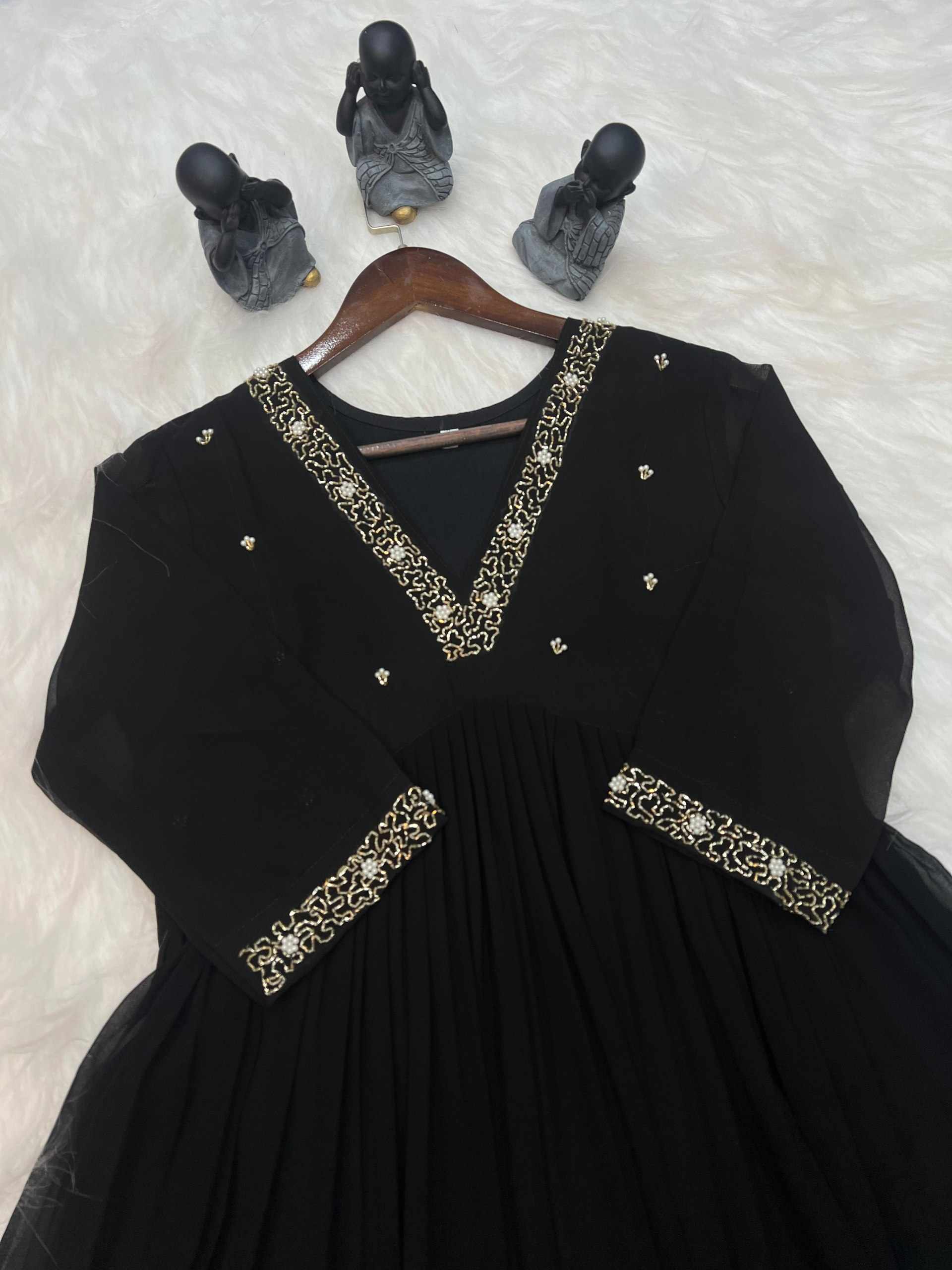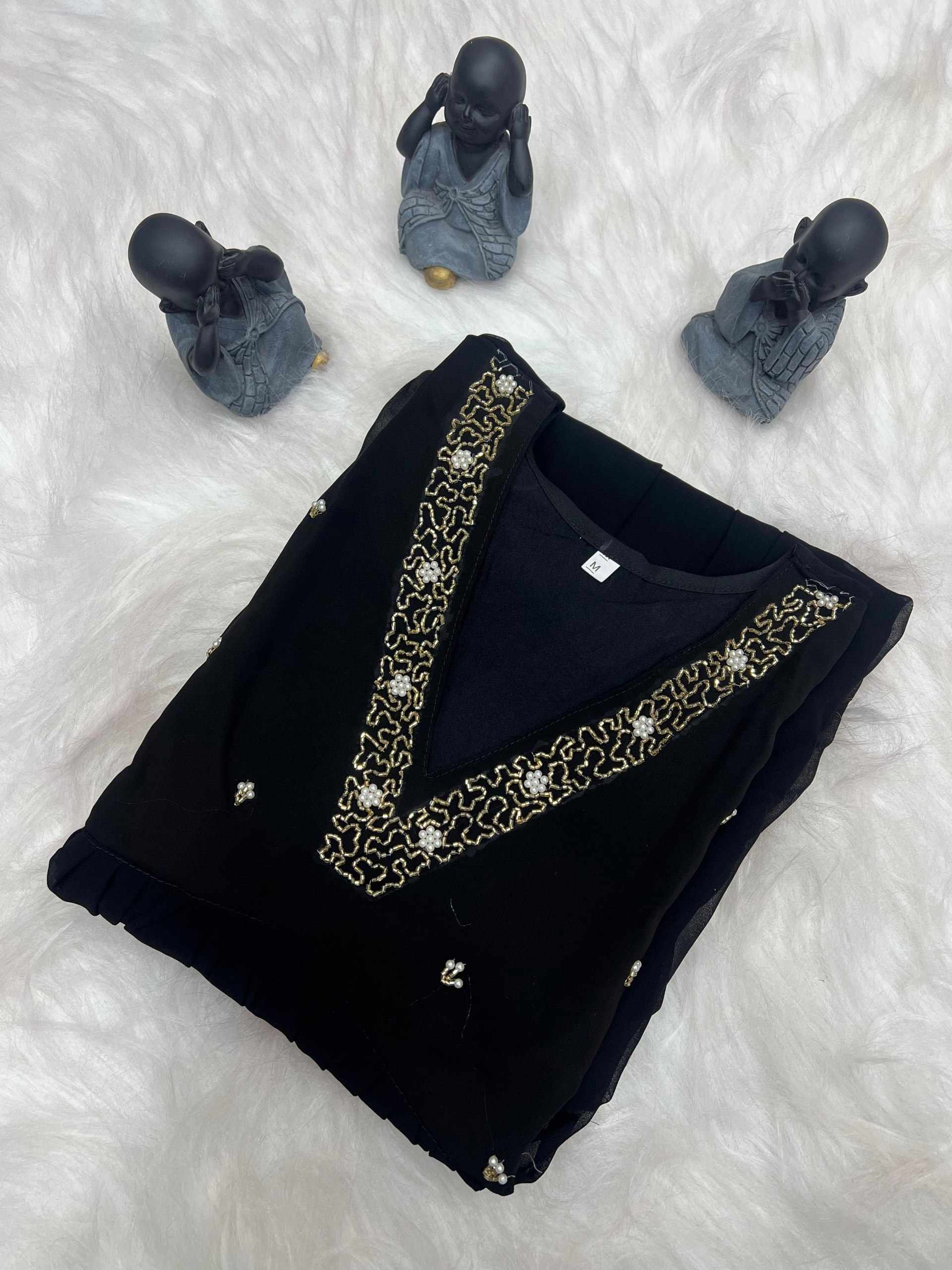 WM10 BLACK BLOOMING GEORGETTE HANDWORK KURTI